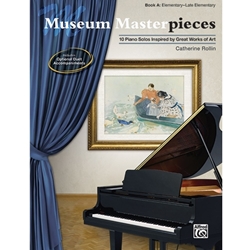In Museum Masterpieces, Book A, composer Catherine Rollin has created musical expressions of some of the great works of art found in museums throughout the world. The paintings that inspired these pieces are beautifully displayed on a four-page color insert at the center of the book, along with historical notes about each painting. Titles: At Sea (Albert Edelfelt) * Butterflies (Odilon Redon) * Feeding the Ducks (Mary Cassatt) * A Maratha Hunting Party (Edwin Lord Weeks) * Napoleon Crossing the Alps (Jacques-Louis David) * The Oregon Trail (Albert Bierstadt) * Portrait of Adele Bloch-Bauer I (Gustav Klimt) * Rain (Vincent van Gogh) * The Swing (Pierre-Auguste Renoir) * Tiger in a Tropical Storm (Henri Rousseau). A Federation Festivals 2024-2028 selection.